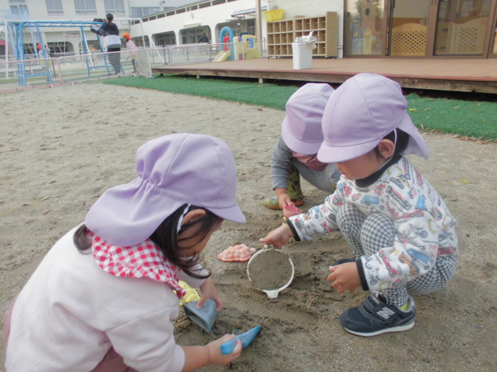 最近では、気になるお友だちのところへ自分から歩み寄り、「〇〇ちゃん、おいで~」「いっしょにあそぼう!」と名前を呼んで誘い合う姿も見られます。